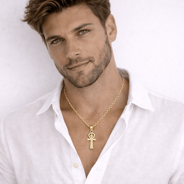 Surnommée la clé de vie par les anciens Égyptiens, l'Ankh est bien plus qu'un symbole : c'est la clé des mystères de l'existence et de l'au-delà. Ce collier pendentif clé de vie en acier or incarne cette sagesse millénaire avec une élégance sobre et raffinée, pour un bijou égyptien qui traverse les époques sans jamais se démoder. Sobre et affirmé à la fois, ce collier croix Ankh se porte au quotidien aussi bien qu'en occasion spéciale. Fabriqué en acier inoxydable couleur or, ce pendentif croix Ankh est hypoallergénique, résistant à l'oxydation et sans entretien particulier. Une pièce intemporelle et porteuse de sens, parfaite pour vous ou pour offrir.