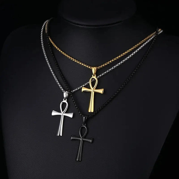 Collier égyptien avec un pendentif croix Ankh en acier inoxydable or